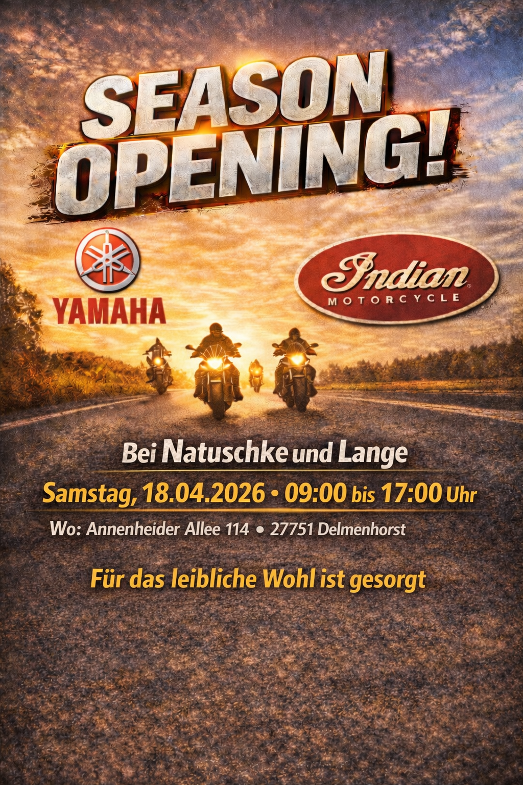 Natuschke & Lange ist die Adresse, wenn es um das Thema Motorradfahren geht. Hier steht unser freundliches Team bereit, um dir deine Wünsche zu erfüllen: Ein neues Fahrzeug? Eine Probefahrt? Einen Reifenwechsel? Als Vertragshändler für Yamaha und Indian stellen wir uns flexibel auf deine Anforderungen ein und bieten einen Service zu fairen Preisen. Besuche gerne unseren Showroom und lass dich von unserer Leidenschaft für Motorräder anstecken. Du findest uns direkt an der Abfahrt B75 und an der Autobahnabfahrt A28 Delmenhorst-Hasport – schau doch mal rein!